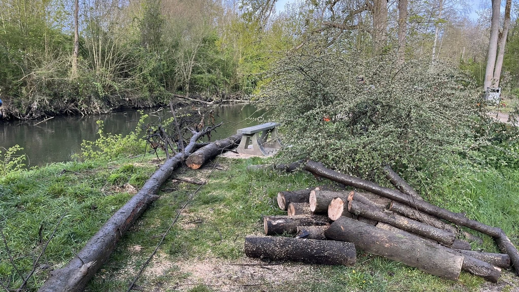 C’est bien connu, les fréquentes intempéries, et notamment les tempêtes, ont des impacts non négligeables sur les berges, et principalement sur les arbres qui y sont présents, les plus fragiles d’entre eux finissant par se pencher, quand ce n’est pas par tomber dans la rivière. Ceci est vrai pour les berges du Canal Louis XIV, les berges de l’Eure, mais aussi pour les abords de l’étang Cintract.